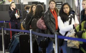 El proceso de embarque digital valida la identidad de un viajero sin pasaporte ni tarjeta de abordar. El aeropuerto JFK,...