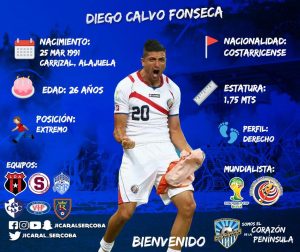 El futbolista Diego Calvo es la nueva figura de Jicaral Sercoba para el Torneo de Clausura 2018 de la Liga...