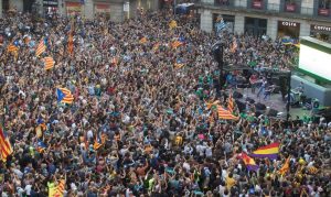 Miles de personas se concentraron hoy en distintos puntos de Barcelona (noreste) para celebrar la declaración unilateral de independencia aprobada...