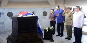 El presidente venezolano, Nicolás Maduro, rindió tributo ante la tumba del fallecido líder Fidel Castro el martes, en Santiago de...