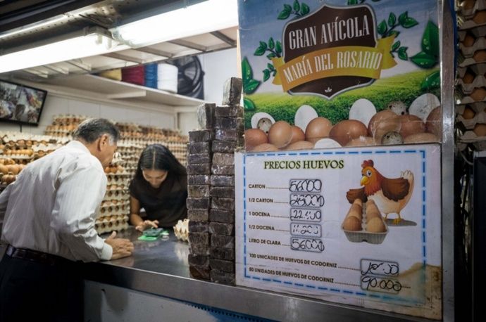 Con el dólar estadounidense alrededor de los 20,000 bolívares, el salario mínimo de 40,000 bolívares que fija el Gobierno se traduce en 2 dólares mensuales, una cantidad que no alcanza para comprar un kilo de carne o un cartón de huevos.