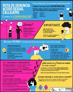 La ley define el acoso sexual callejero como “toda conducta o conductas con connotación sexual y con carácter unidireccional, sin que medie el consentimiento ni la aceptación de la persona o las personas a las que está dirigida, con potencial de causar molestia, malestar, intimidación, humillación, inseguridad, miedo y ofensa, que proviene generalmente de una persona desconocida para quien la recibe y que tiene lugar en espacios públicos o de acceso público”.