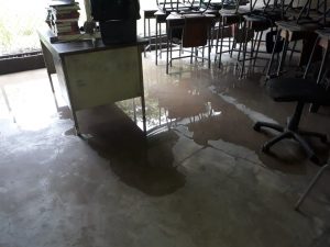 – Mal estado de la infraestructura del salón, ya que utiliza un salón comunal que de antemano está propenso a inundaciones, con la mínima lluvia se inunda e ingresa considerable cantidad de barro.