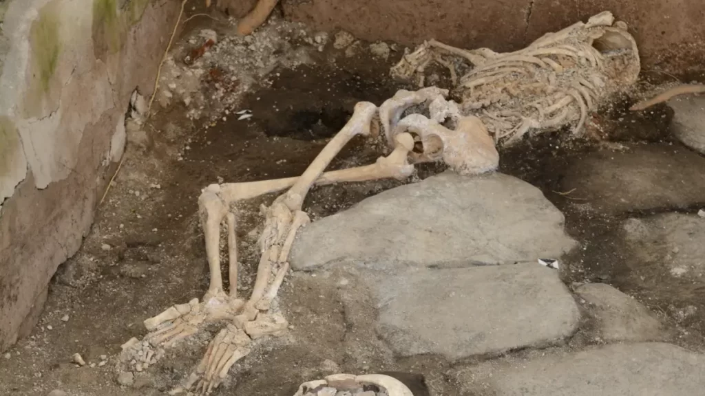 Los investigadores analizaron huesos contaminados por el yeso y huesos no contaminados o mínimamente contaminados. «Cruzando los datos antropológicos y de la estratigrafía del volcán hemos podido observar también que hay aspectos importantes como que estos fugitivos que estaban saliendo de Pompeya en una segunda fase de la erupción ya morían asfixiados justo a las puertas de salida de la ciudad, en la zona de Puerta Nola«, añade Gallello-
