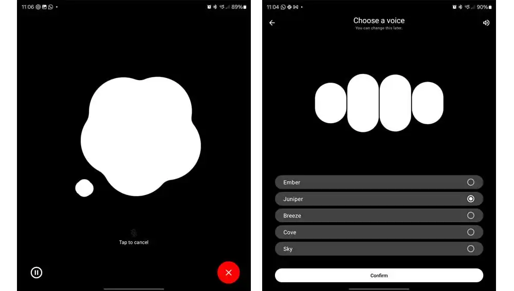 Esto quiere decir que la conversación será fluida y sin parones. No vas a necesitar pulsar en ningún botón cuando quieras hablar, ya que ChatGPT reconocerá el momento en el que le estés hablando. Este modo se hizo viral en su salida porque podías incluso conseguir que dos móviles con ChatGPT hablasen entre sí.