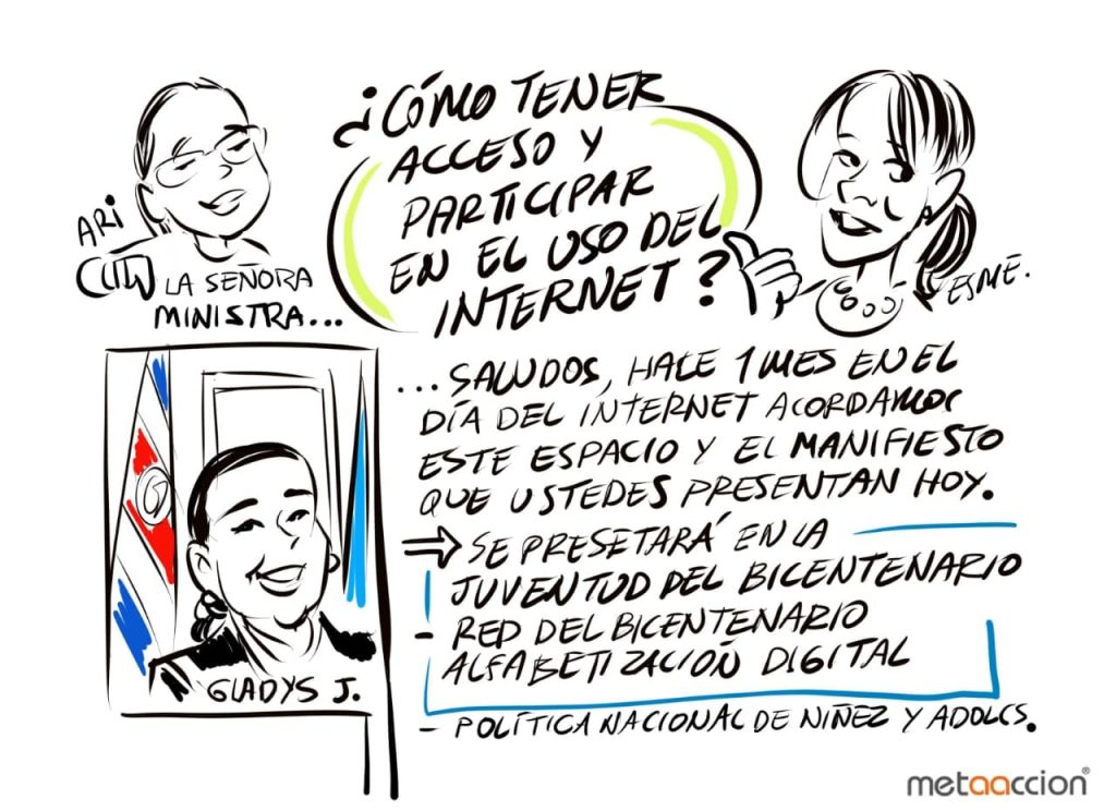 San José, Costa Rica. Tener la garantía de contar con conexión a Internet, espacios deinformativos y de reflexión sobre cómo confiar en la Internet a través de un uso seguro,responsable y participativo de la web, son parte de las peticiones que un grupo deadolescentes entregaron al Estado y la sociedad civil a través del manifiesto “La voz delas niñas, niños y adolescentes ante el Estado y la sociedad: compartiendoresponsabilidades, necesidades y recomendaciones para un mejor uso delInternet”.Ellas y ellos entregaron las peticiones, este martes, a la Ministra de la Niñez yAdolescencia y jerarca del Patronato Nacional de la Infancia (PANI), Gladys Jiménez y aMilena Grillo de la Junta Administrativa de la Fundación PANIAMOR, a través de unaactividad virtual transmitida por Facebook Live.