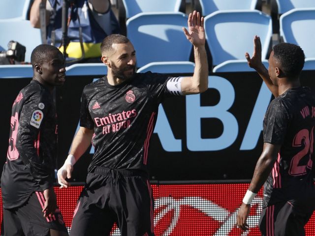 Dos goles de Benzema dieron ventaja a los de Zidane, aunque los celestes llegaron con vida al descanso gracias a un gol de Santi Mina en el minuto 43.