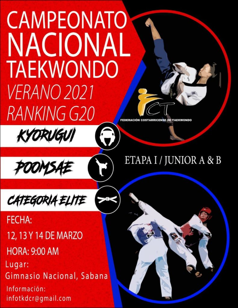 El día viernes 12 de marzo, la competencia será a partir de las 12:00 md, donde arrancará con la competencia de la modalidad de Poomsae en todas sus categorías.